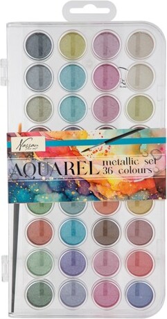 Metallisk akvarelsæt med 36 farver i en gennemsigtig palet. Dette sæt tilbyder smukke, skinnende...