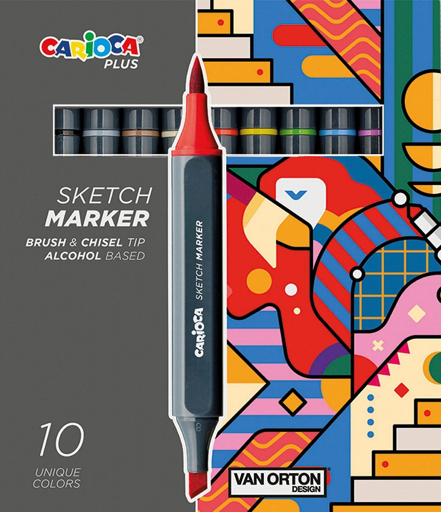 PLUS sketch-tusser fra Carioca med mange flotte farver. Perfekte til alle, der holder af at tegne og farvelægge. - Intensive farve, der ikke bliver bleget af sollys. - Dobbelt spids. - Ergonomisk design. - Let at opbevare. - Perfekt til din lille kunstner. - 10-pak. - CE-mærket. - Anbefalet alder: Fra 3 år.