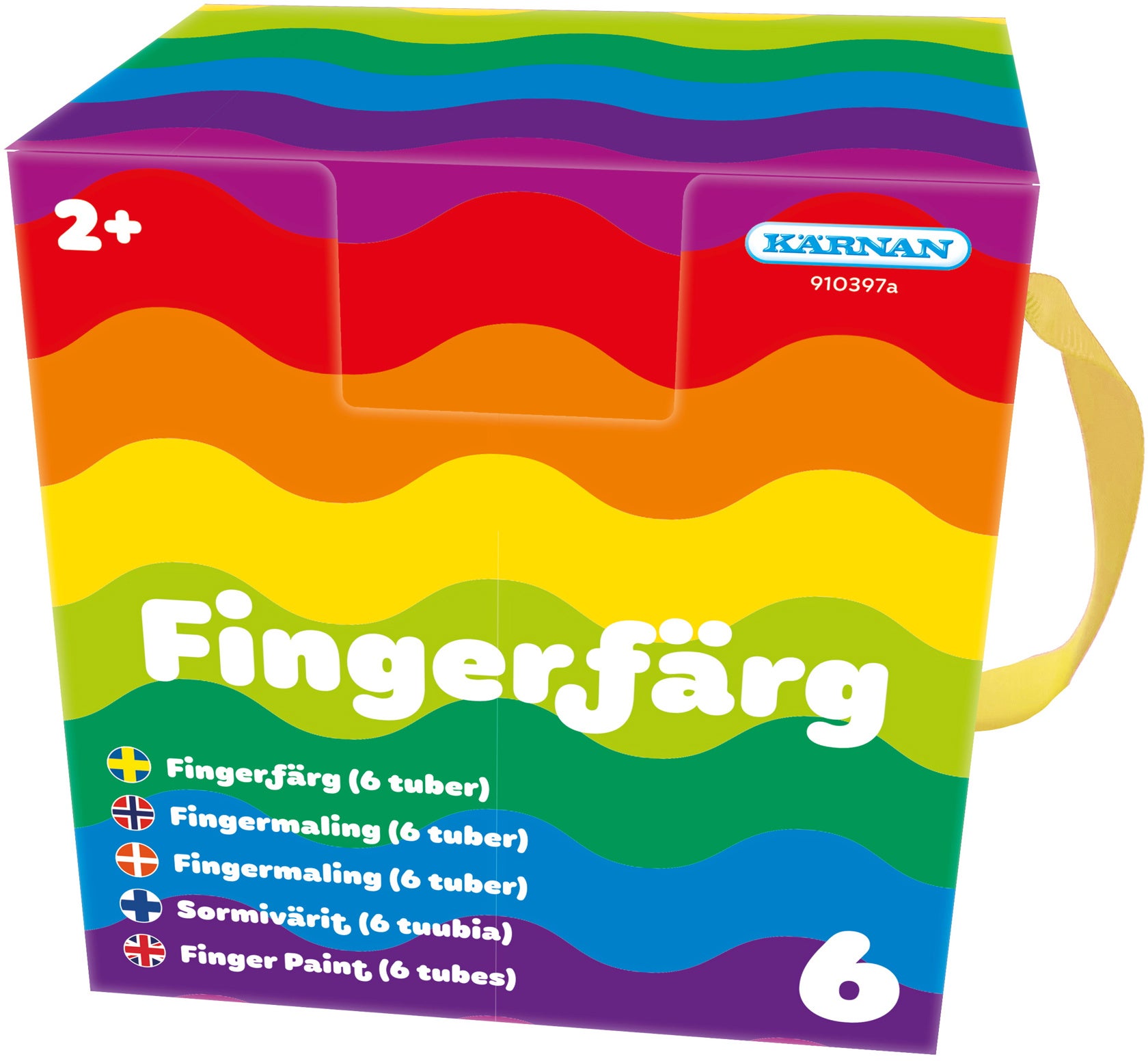 Fingermaling fra Kärnan med smukke farver. Perfekt til timevis af kreativ leg. - Indeholder: 1 opbevaringskasse, 6 farver. - Praktisk opbevaringskasse. - Hver tube indeholder 60 ml maling. - CE-mærket. - Anbefalet alder: Fra 3 år. - Plastik, papir.