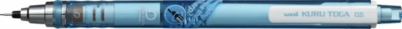 Stiften drejer rundt når stiftblyanten løftes og holdes derved altid spids og skriveklar. Uni-Ball