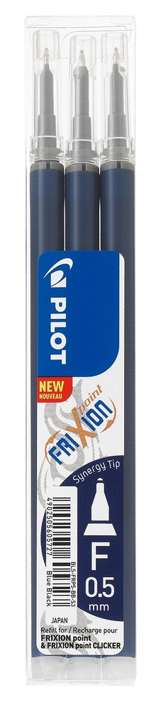 Refills til FriXion Point Clicker. Pakke med 3 stk. 0.5mm. Blå/sort