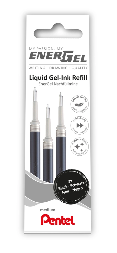Refill med EnerGel gelblæk med en kuglediameter på 0.7mm og en stregbredde på 0.35 mm. LR7 kan bruges til alle genopfyldelige EnerGel-penne. Pakke med 3 refills.