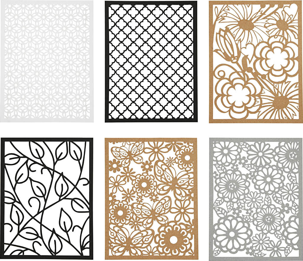 Sortiment af karton laserudstanset med fine detaljer. Oplagt til kortfremstilling og scrapbooking. I...