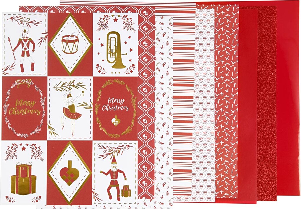 Designpapir I Blok - 21x30 Cm - 120+128 G - Rød - Hvid - 24 Ark