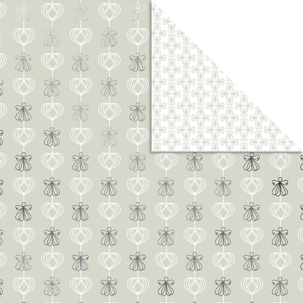 Designpapir - Engle Og Hjerter - 30,5x30,5 Cm - 180 G - Sølv - 3 Ark