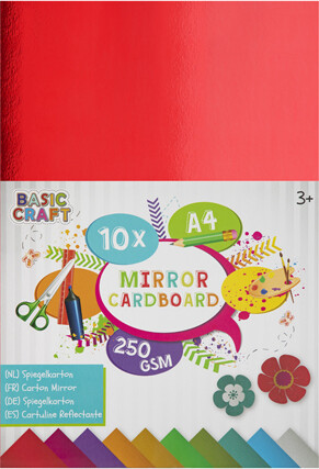 Spejlkarton A4 - 10 ark, 250 gram. Farvet karton i 250 gram med helt blank spejloverfalde pakket i...