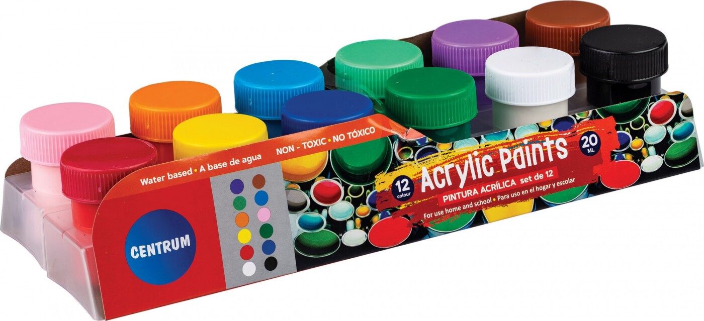 Akrylfarve 12 Stk 20 Ml - Dåser Assorterede Frv - Centrum