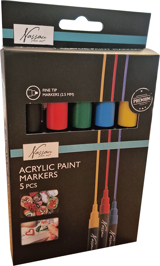 Akryl Marker Sæt, 5 stk. i Boks Skab farverige og holdbare kunstværker med dette akryl marker...
