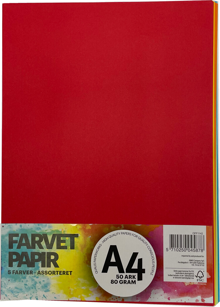 Kopipapir A4 MIX indeholder 50 ark i fem forskellige farver med 10 ark af hver farve. Papiret har en...