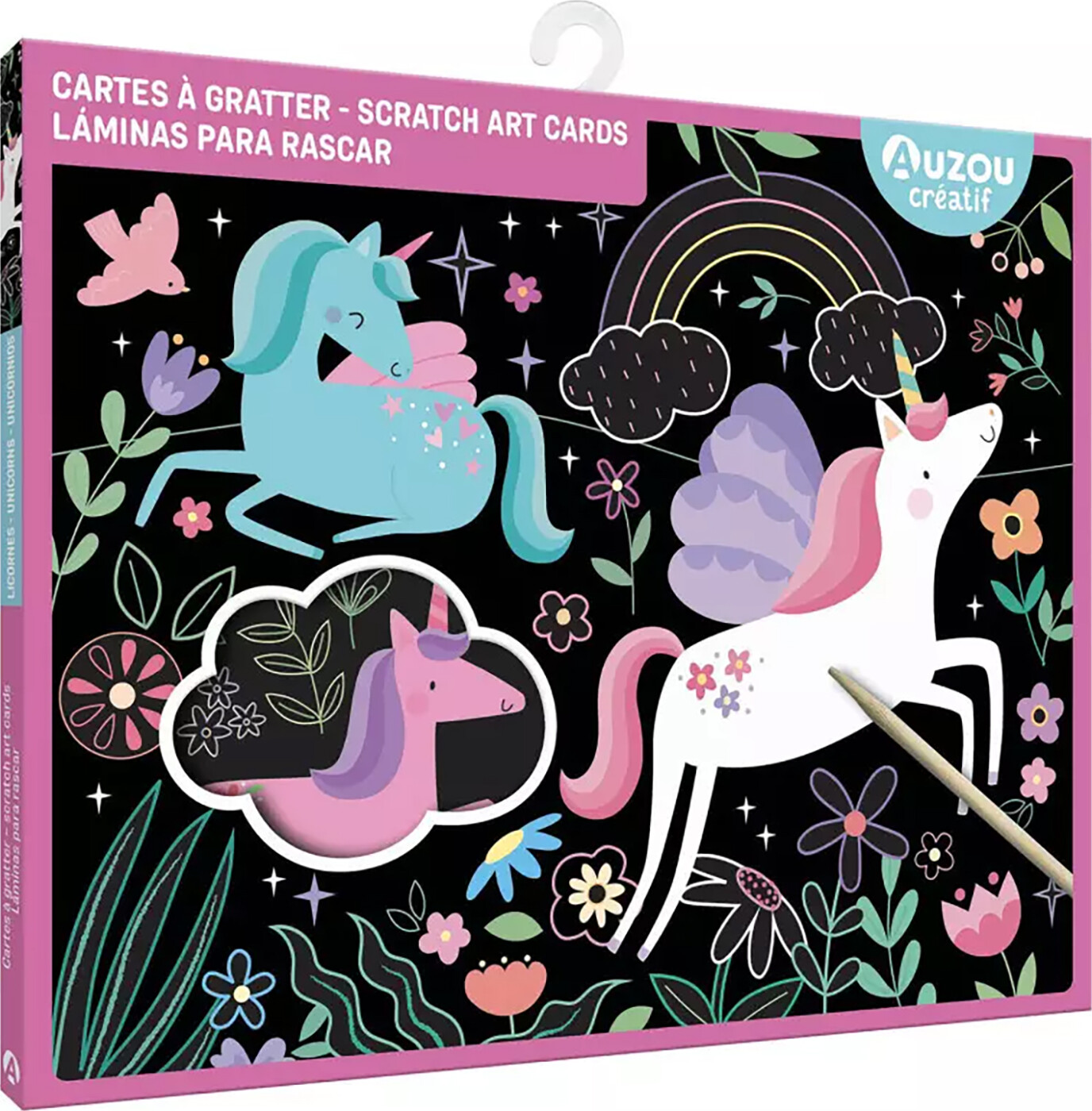 Et kreativt sæt med 10 søde enhjørningebilleder til at skrabe og fuldende med den medfølgende...
