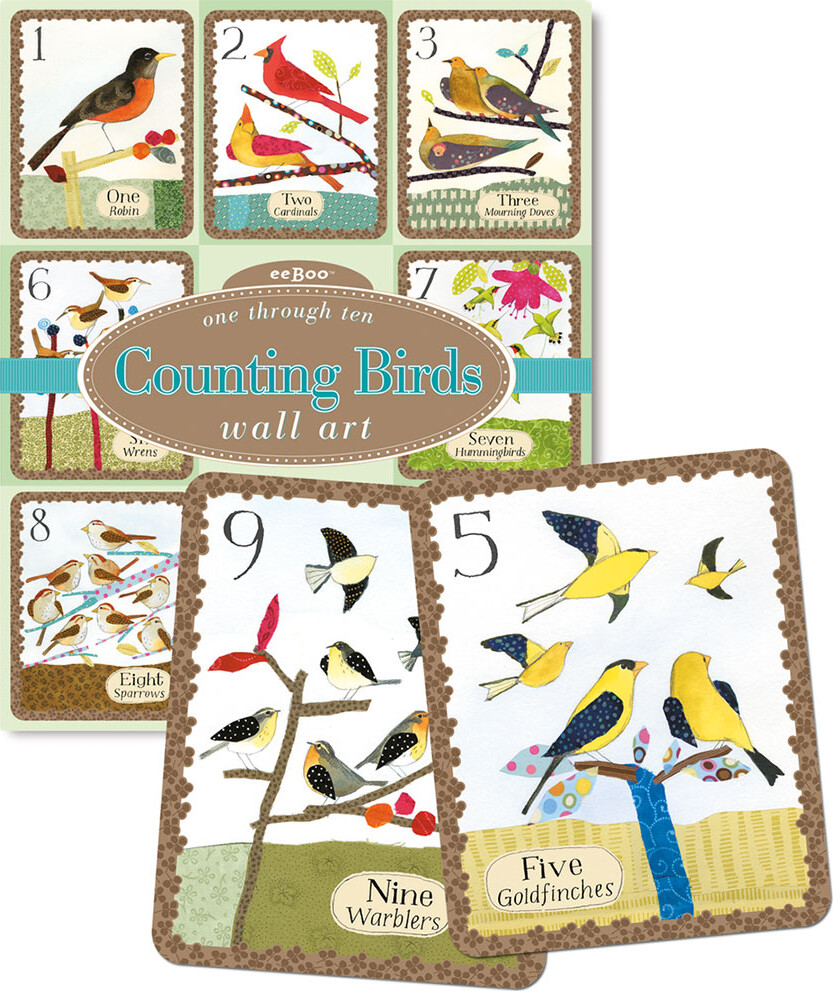 Eeboo - Kort Med Tal Og Fugle - Vægdekoration - 10 Stk
