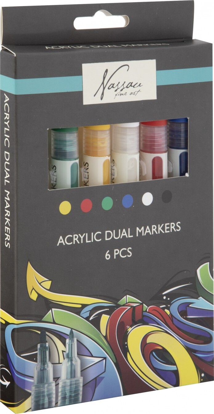 Akryl Tusser - Twin Markers - 6 Farver - Nassau Fine Art