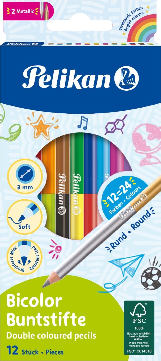 Farveblyanter - Dobbeltsidet - 12 Stk - 24 Farver - Pelikan