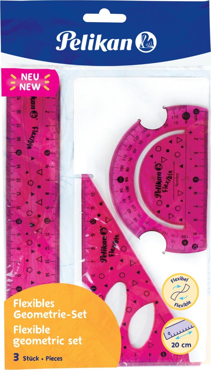 Geometrisæt - Fleksible - 3 Dele - Pink - Pelikan