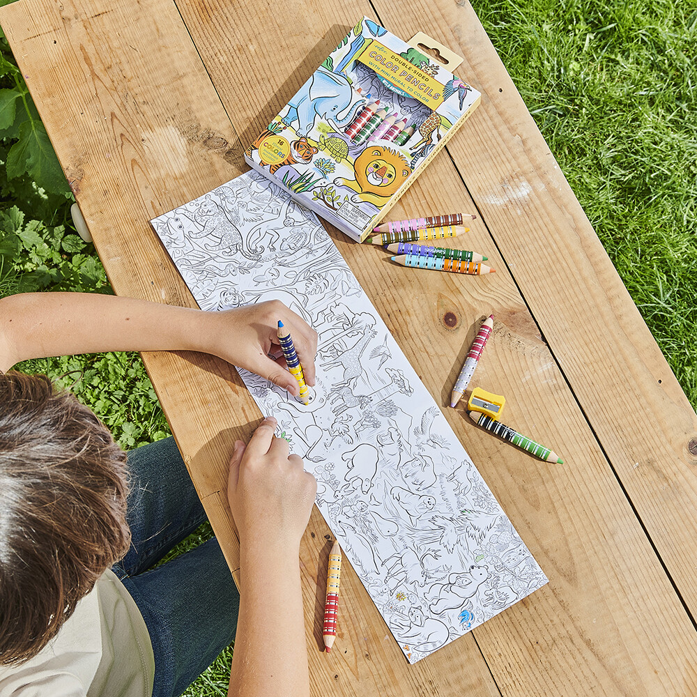 Farveblyanter Dobbeltsidet - Inkl. Tegneplakat - Vilde Dyr - 9 Dele