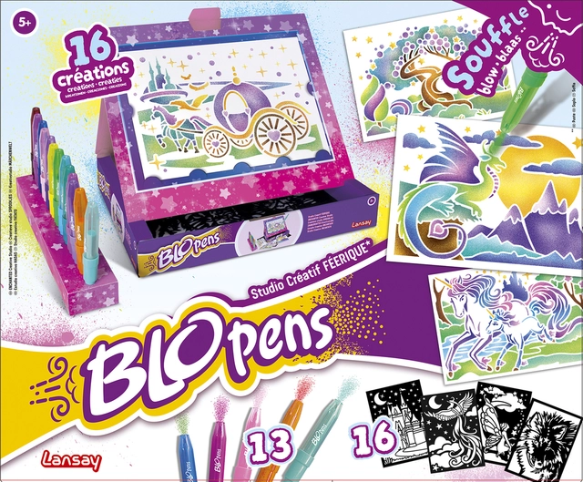 BLOpens Kreative Studio forvandler almindelige eftermiddage til professionelle kunstneroplevelser, hvor børn lærer den fascinerende teknik at spraymale med blæsemarker. Dette komplette kreative sæt inkluderer et smart staffeli, der foldes ud fra selve emballagen, specialdesignede BLOpens-blæsemarker, stencils og alt nødvendigt til at skabe imponerende kunstværker. BLOpens har med dette produkt skabt en unik kombination af traditionel stencilkunst og moderne blæseteknologi, der giver børn mulighed for at opleve den samme magiske spray-effekt som professionelle airbrush-kunstnere bruger.