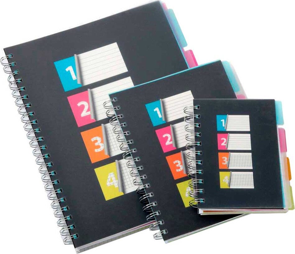 Denne praktiske notesbog med 4 faner er ideel til dig, der ønsker at holde orden i dine notater....