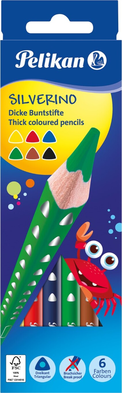 Pelikan - Silverino - Tykke Farveblyanter - 6 Farver