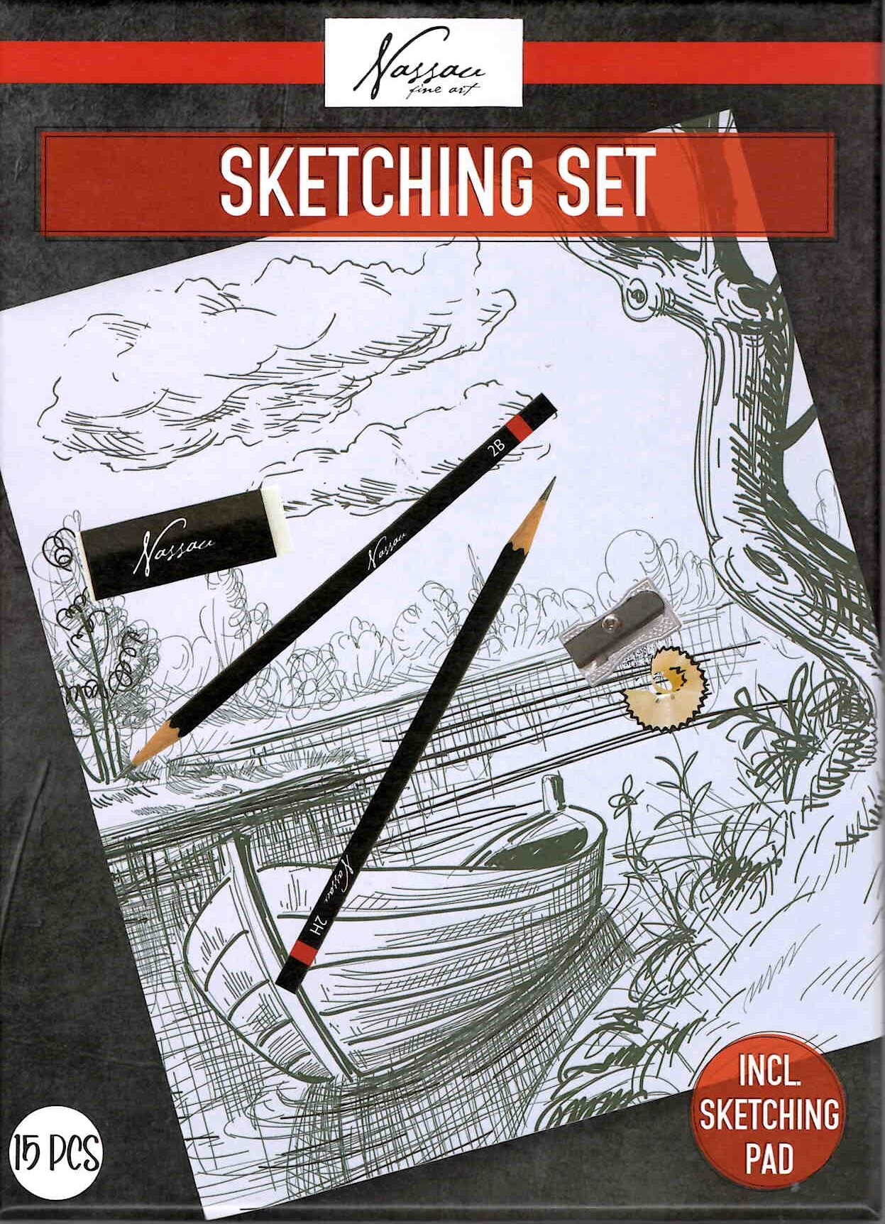 Skitsesæt Med Skitseblok - 15 Dele - Nassau Fine Art