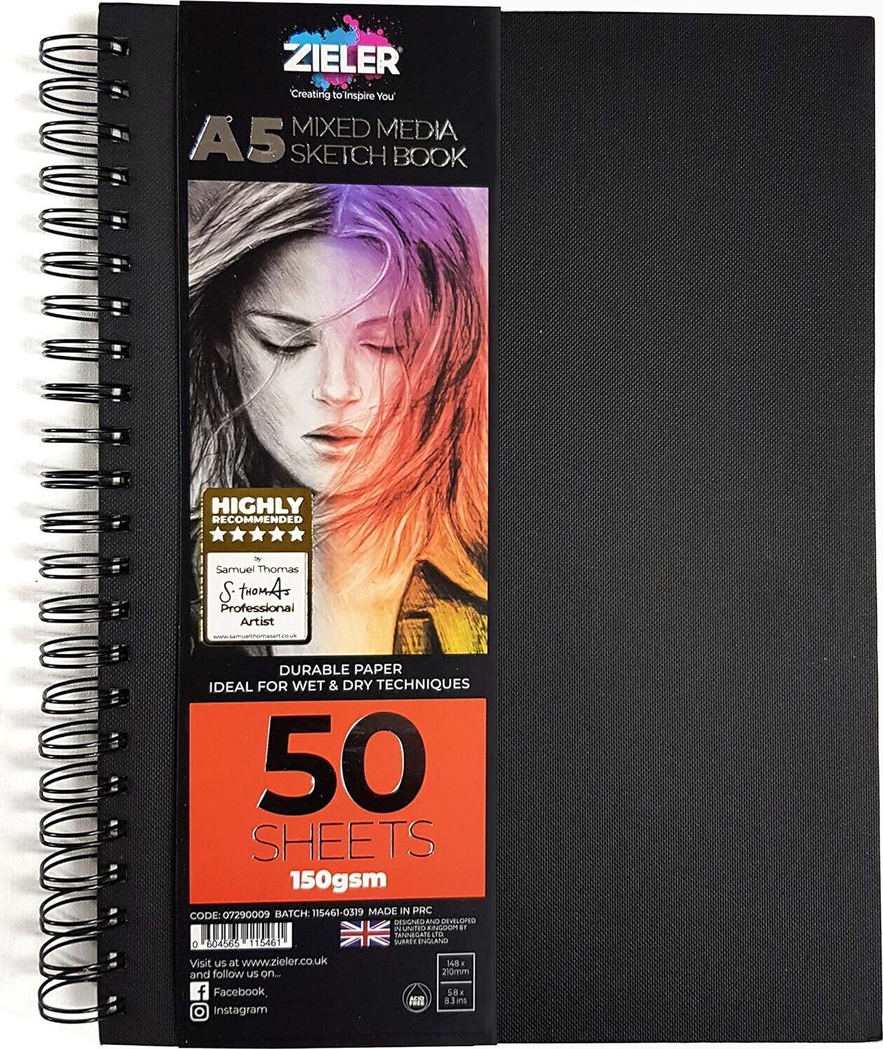 Skitsebog Med Spiralryg - A5 - 150 G - 50 Sider - Zieler
