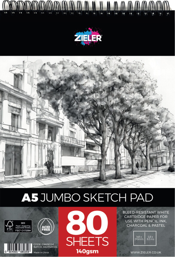 Skitsebog Med Spiralryg - A5 - 140 G - 80 Sider - Zieler