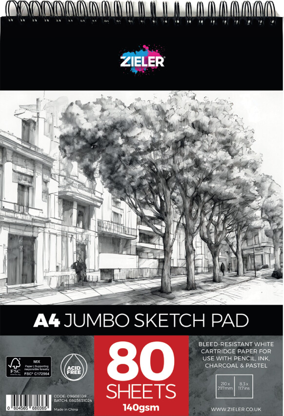 Zieler Jumbo skitseblokken er velegnet til kunstnere, designere og alle, der nyder at tegne. Med 80...