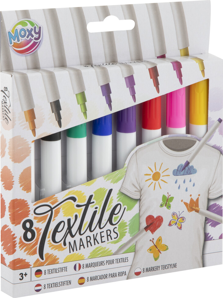 Skab flotte designs på tøj og stof med disse tekstil markere! Sættet indeholder 8 markere i...