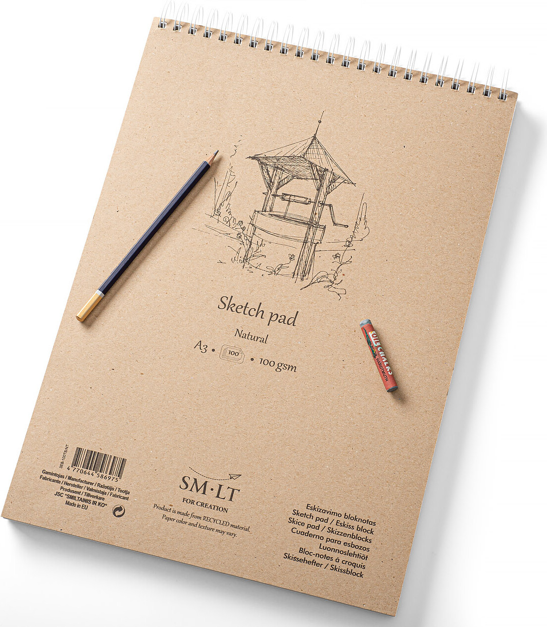 SKITSEBLOK NATURAL A3 Stor skitseblok med hvidt universalpapir i 100% genbrugskvalitet - ideel til...