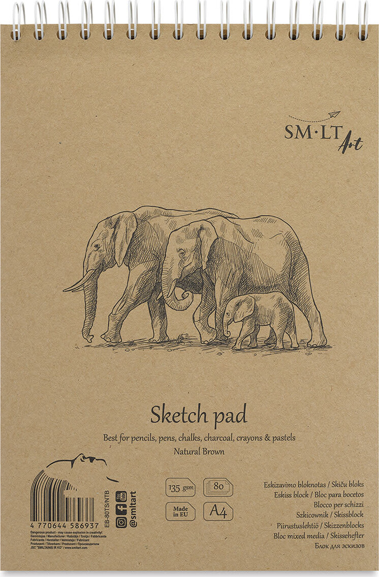 SKITSEBLOK NATURAL BROWN A4 Tegneblok med kraftigt, naturbrunt papir fremstillet af 100%...