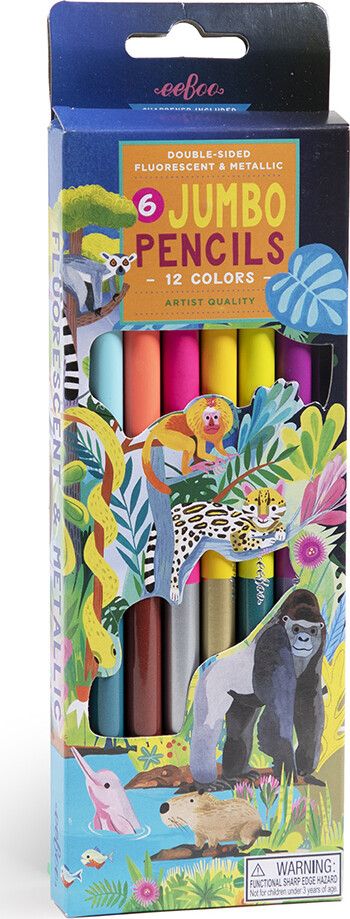 Tykke Farveblyanter - Dobbeltsidet - Regnskov - 6 Stk - Eeboo