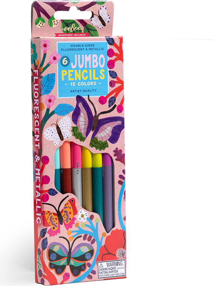 Tykke Farveblyanter - Dobbeltsidet - Sommerfugle - 6 Stk - Eeboo