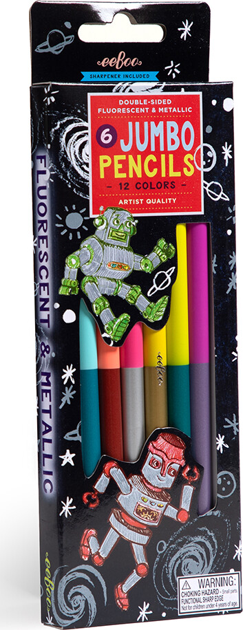 Tykke Farveblyanter - Dobbeltsidet - Robot - 6 Stk - Eeboo