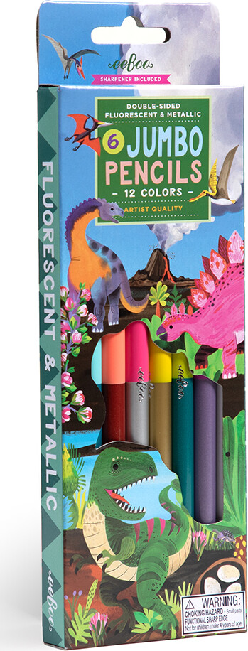 Tykke Farveblyanter - Dobbeltsidet - Dinosaur - 6 Stk - Eeboo
