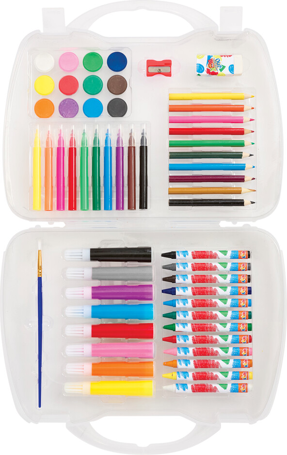 Denne praktiske plastik kunstkuffert fra Out of the Box er den ideelle ledsager for kreative børn. Den er designet til at opbevare og organisere alle dine kunstmaterialer, så børnene kan udfolde deres kreative evner uden besvær.