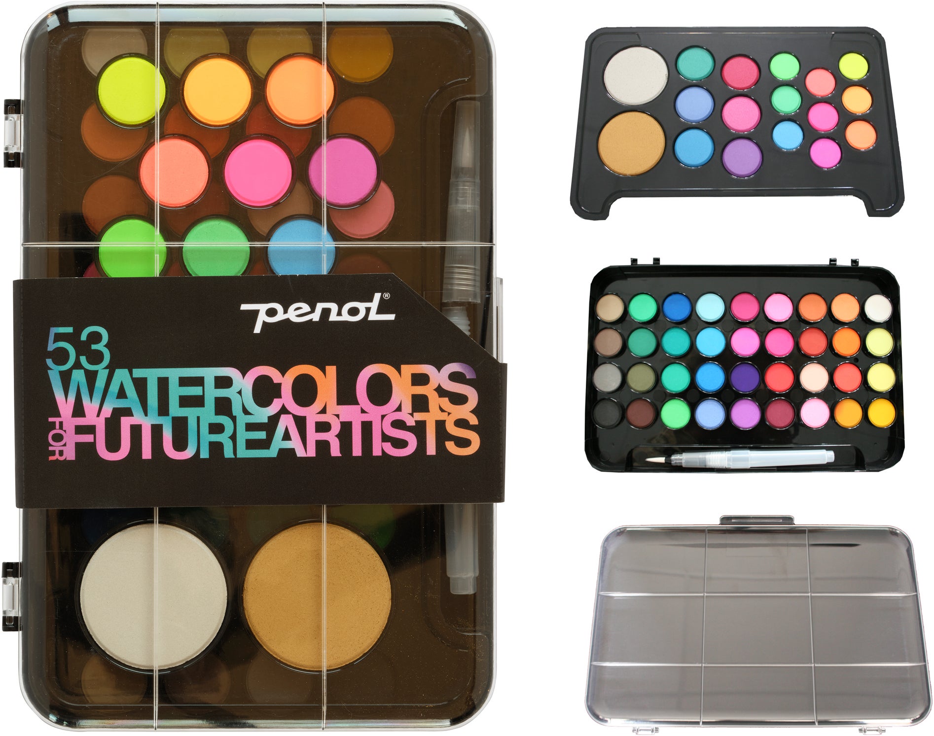 Giv slip på din kreativitet med Penol For Future Artists Vandfarver, der leveres i en fantastisk pakke med 53 forskellige nuancer. Uanset om du er nybegynder eller en mere erfaren kunstner, er disse vandfarver ideelle til at skabe livlige og imponerende kunstværker. Farverne er lette at blande, hvilket giver dig mulighed for at eksperimentere med forskellige nuancer og effekter. Den medfølgende pensel med vandbeholder gør det nemt at arbejde med farverne, så du kan fokusere på at udfolde din fantasi. Perfekte til både børn og voksne, er disse vandfarver også velegnede til skoleprojekter, hobbyer eller blot til sjov i din fritid. Gør dine kreative stunder endnu mere spændende med Penol For Future Artists Vandfarver!