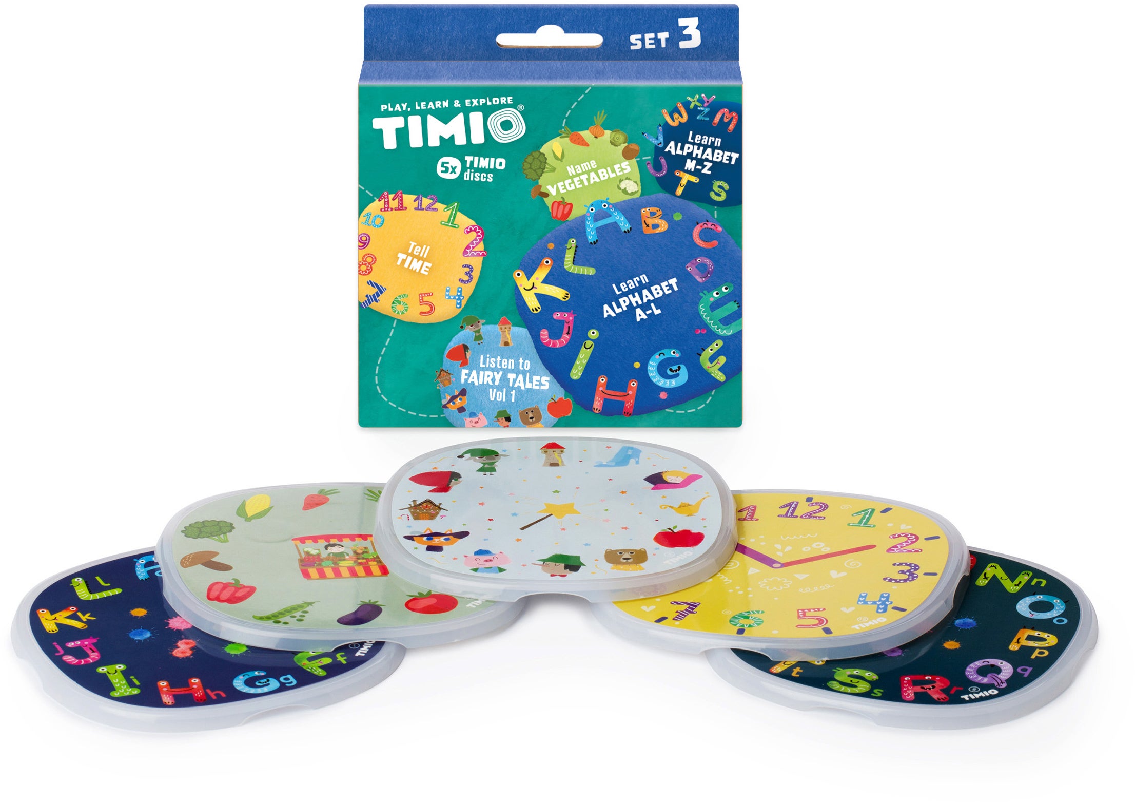 Med TIMIO Skivepakke 3 kan børn udforske en verden af læring gennem leg. Hver skive er designet til at stimulere børns fantasi og hjælpe dem med at udvikle deres færdigheder, mens de har det sjovt. Uanset om det er at lytte til musik, fortællinger eller deltage i interaktive læringsspil, vil børnene elske at skifte imellem de forskellige skiver.