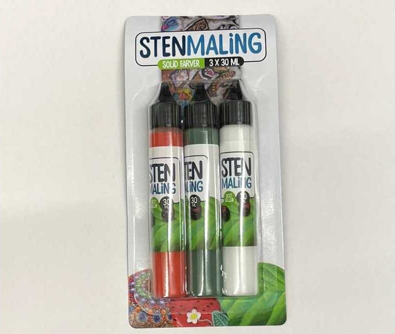 Stenmaling 3 X 30 Ml - Grøn-hvid-rød