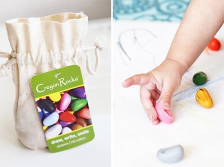 Disse helt unikke farvekridt er udformet som små sten og er specielt udviklet til at ligge godt i de små børnehænder.Disse farvesten er ergonomiske og de giver det dit barn langt flere muligheder for at farvelægge en tegning, da kridtet farver forskelligt, alt efter hvordan det placeres på papiret. Det er nemt at lave tynde streger og farvelægge større områder.Farvestenens form får dit barn til helt naturligt at holde med tommel-, pege- og langefinger (pincetgrebet ). Det er rigtig vigtigt at børn så tidligt som muligt får indlært pincetgrebet, så det bliver nemmere for dem, når de skal til at holde på en blyant og lære at skrive. De er udviklet af en børnehaveklasselærer i USA som så, hvordan mange børn havde svært ved at holde på traditionelle farvekridt.Farvestenene er lavet af sojavoks med naturlige farvepigmenter.Dette sæt er med 8 sten i 8 forskellige farver. Hver sten er ca. 3 cm og leveres i stofpose som måler 9x7 cm.