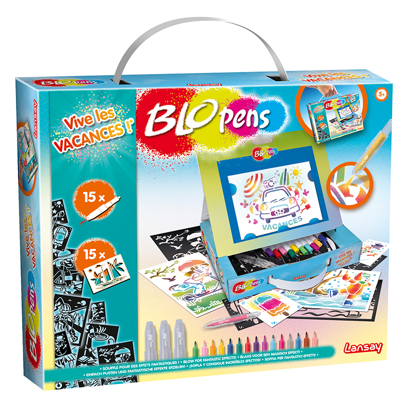 Læg en af skabelonerne over et stykke papir og pust gennem pustetusserne. Så nemt er det at skabe et fint lille værk i en fart. Jo hårdere dit barn puster, jo mere kraftig bliver farven. Man kan blande blere farver og skabe en flot effekt - lad eventuelt farven tørre en smule inden en ny tages i brug.Sættet indeholder:15 mini pustetusser og 3 hylstre15 skabeloner med feriemotiver15 tegnearkÆske der kan laves om til et staffeli.