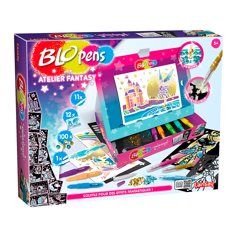 Læg en af skabelonerne over et stykke papir og pust gennem pustetusserne - her får dit barn både klassiske og metalliske pustetusser. Det er en dejligt nem måde at skabe et hurtigt lille fantasiværk med glimtende effekter. Jo hårdere dit barn puster, jo mere kraftig bliver farven. Man kan blande flere farver og skabe en flot effekt - lad eventuelt farven tørre en smule inden en ny tages i brug.Sættet indeholder:8 små standard pustetusser3 små metalliske pustetusser12 stencilskabeloner100 pailetter (50 blå og 50 røde) der kan limes på 5 ml limstift12 tegnearkÆske der kan fungere som staffeli.