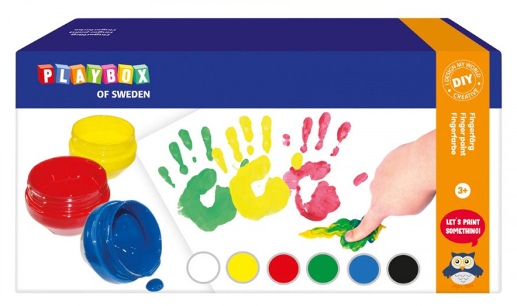 Her får du 6 bøtter i klare farver til håndaftryk, kruseduller og stor kunst. Psst .. man må også gerne stikke en pensel i malingen. Fingermaling kan bruges både på pap, papir, andre glatte flader, træ, sten, og hvad jeres fantasi nu byder jer.