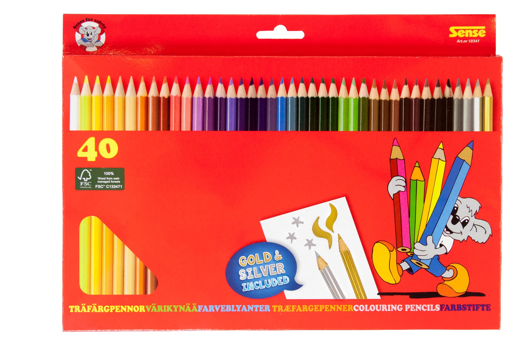 Stort sæt med hele 40 fine farveblyanter inkl de særlige farver guld og sølv. Farveblyanterne er fremstillet af FSC certificeret træ, som er bæredygtigt produceret med særlig hensyntagen til miljøet. Sikkerhedstestet og godkendt efter EU standarder. Lad altid dit barn have adgang til dejlige tusser og skriveredskaber, så kreativiteten kan flyde frit.