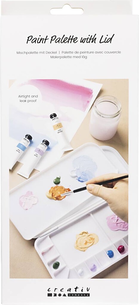 Malerpalette Med Låg - Str. 27x12,7x2,3 Cm - Sølv - Hvid - 1 Stk.