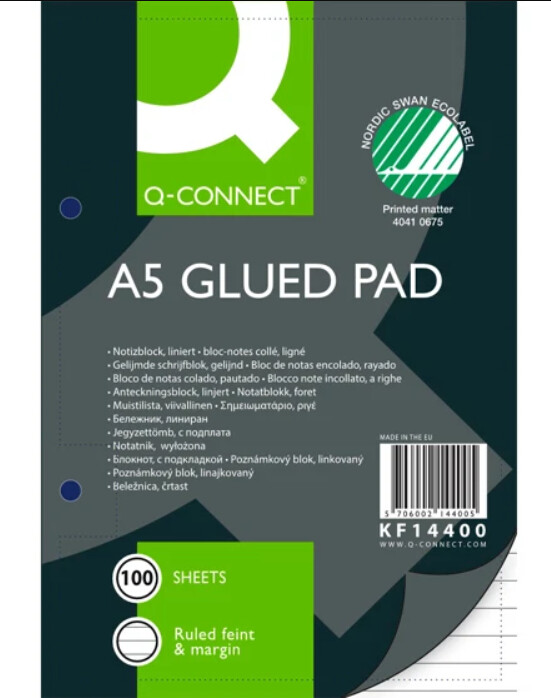 Denne standardblok i A5-format er en praktisk og pålidelig løsning til både hverdagens notater og kreative projekter. Med 100 linjerede sider giver notesblokken dig masser af plads til at nedskrive dine tanker, idéer og opgaver. Uanset om du bruger den til skolearbejde, mødenotater eller dagbogsskrivning, vil denne notesblok være din trofaste følgesvend. Notesblokken er designet med sidelimet, hvilket giver dig mulighed for nemt at fjerne siderne, hvis du har brug for at dele noter eller organisere dit arbejde. De to huller i kanten gør det muligt at indsætte den i en ringbind eller mappe, hvilket gør det nemt at holde styr på dine noter og projekter. Den linjerede overflade hjælper dig med at skrive pænt og struktureret, så dine notater altid er lette at læse. Uanset om du er studerende, professionel eller bare en, der elsker at skrive, vil denne notesblok imødekomme dine behov. Den kompakte A5-størrelse gør det nemt at tage notesblokken med dig overalt i tasken, rygsækken eller endda i lommen. Med dens simple og funktionelle design er denne notesblok både stilfuld og praktisk. Vælg denne notesblok i dag og gør dine notater mere organiserede og tilgængelige. Den er ikke kun funktionel, men også et godt valg for dem, der ønsker at være kreative med deres skrivning. Gør dig klar til at nedskrive dine tanker med stil og lethed!