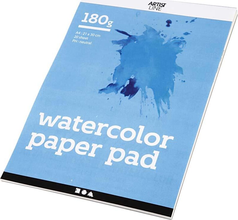 Akvarelblok - A4 - 210x297 Mm - 180 G - Hvid - 20 Ark/ 1 Stk.