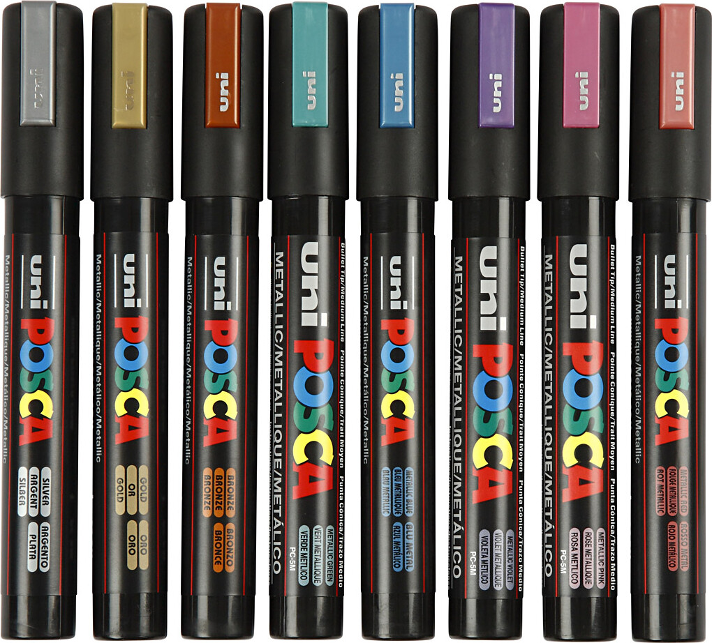 Posca Tusch - Nr. Pc-5m - Tykkelse 2,5 Mm - Metallicfarver - 8 Stk