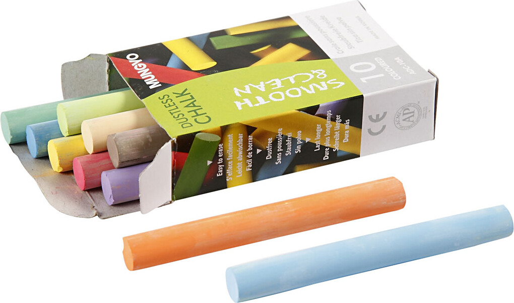 Tavlekridt - L 8 Cm - ø 10 Mm - Assorterede Farver - 10 Stk.