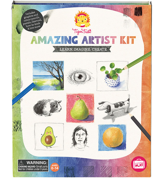 Tiger Tribe Farvesæt - Amazing Artist Kit er det perfekte valg for kreative børn, der elsker at udforske deres kunstneriske evner. Dette alsidige farvesæt indeholder alt, hvad dit barn behøver for at skabe farverige og fantasifulde værker. Med en række forskellige farver i både tuscher og farveblyanter kan børnene lege med nuancer og skygger, hvilket fremmer deres kreative udfoldelse. Sættet er designet til at inspirere og engagere, hvilket gør det ideelt til både hjemmebrug og kreative aktiviteter i skolen. Hver komponent er omhyggeligt udvalgt for at sikre, at de er lette at bruge og sikre for børn. Farverne er lyse og livlige, hvilket gør det sjovt for børn at eksperimentere med forskellige teknikker og stilarter. Tiger Tribe Farvesæt er ikke kun en kilde til underholdning; det hjælper også med at udvikle vigtige færdigheder som finmotorik, koncentration og kreativ tænkning. Det er en ideel gave til fødselsdage, julegaver eller bare som en særlig overraskelse for dit barn. Tag skridtet ind i en verden af farver og kreativitet med dette fantastiske kunstner kit, der vil bringe timevis af sjov og læring til dit barns liv.