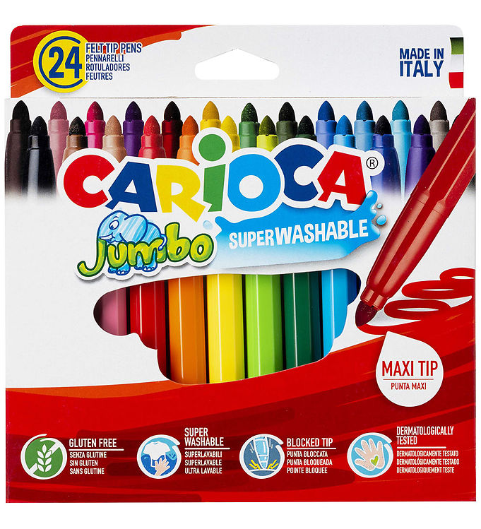 Carioca Tuscher - 24 stk - Multifarvet er det ideelle valg for alle, der elsker at tegne og male. Med 24 forskellige farver kan du udfolde din kreativitet og skabe fantastiske kunstværker. Disse tuscher er designet med fokus på både kvalitet og brugervenlighed, hvilket gør dem perfekte til både børn og voksne. Tuscherne har en blød spids, der giver en jævn farveanvendelse, hvilket gør dem velegnede til både fine detaljer og brede stræk. Uanset om du er en erfaren kunstner eller nybegynder, vil Carioca tuscherne give dig mulighed for at eksperimentere med forskellige teknikker og stilarter. Farverne er intense og lysægte, hvilket sikrer, at dine værker forbliver smukke over tid. Desuden er disse tuscher nemme at rengøre, hvilket gør dem ideelle til brug i skoler og kreative workshops. Den praktiske emballage gør det let at holde styr på dem, så du altid har dit farveudvalg lige ved hånden. Uanset om du skal lave skoleprojekter, male i fritiden eller bare have det sjovt med familien, vil Carioca Tuscher - 24 stk - Multifarvet være en fantastisk tilføjelse til dit kunstudstyr.