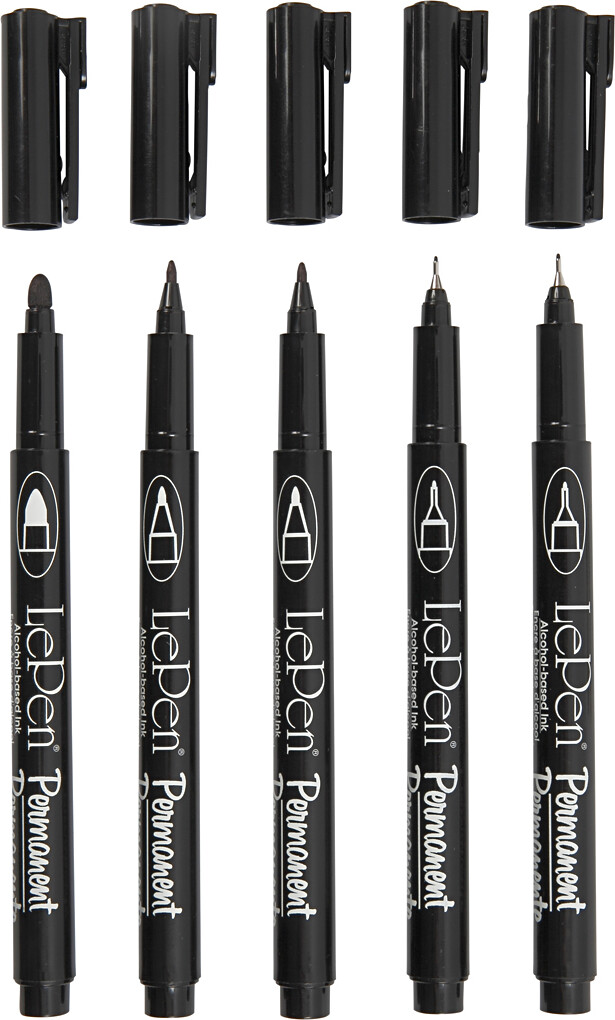 Den permanente tusch i sort kommer i en pakke med fem forskellige tykkelser: 2x0,6 mm, 2x0,8 mm og 1,3 mm. Denne alsidige tusch er ideel til både detaljeret arbejde og større flader, hvilket gør den perfekt til kunstnere, studerende og hobbyister. Den sort permanent tusch er vandfast og lysektro, hvilket sikrer, at dine kreative projekter bevarer deres udseende over tid, uanset om det er på papir, karton eller plast. Tuschens ergonomiske design gør den komfortabel at holde, så du kan arbejde i timevis uden at opleve ubehag. Den hurtigttørrende blæk gør det muligt at arbejde effektivt, uden at du skal bekymre dig om at smudse dine hænder eller dit arbejde. Uanset om du skaber detaljerede tegninger, skriver noter eller laver skitser, vil denne permanente tusch være et uundgåeligt redskab i dit kreative arsenal. Med fem tuscher i forskellige tykkelser får du mulighed for at eksperimentere med forskellige stilarter og teknikker. Fra fine linjer til kraftige streger denne tusch er alsidig og kan bruges til næsten enhver form for kreativ udfoldelse. Gør dine kunstprojekter mere levende med denne professionelle kvalitet permanent tusch!